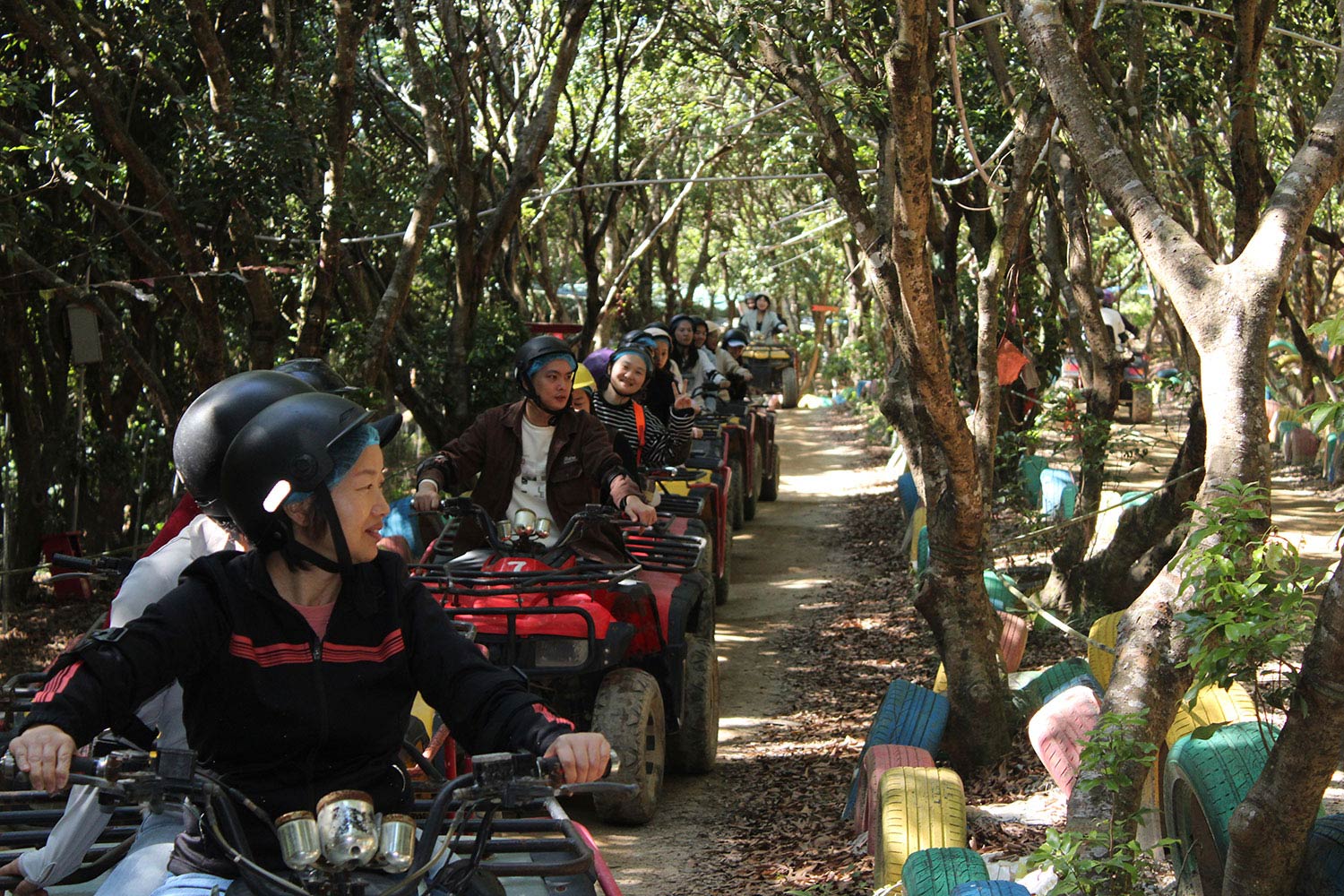 前往鹿嘴山庄,乘坐观光车,打卡电影《美人鱼》的拍摄地